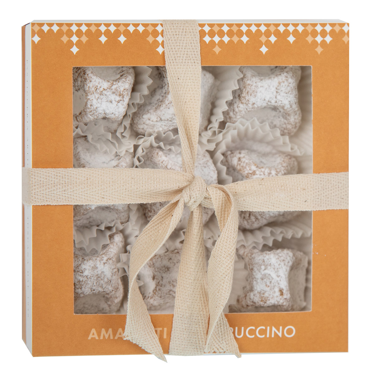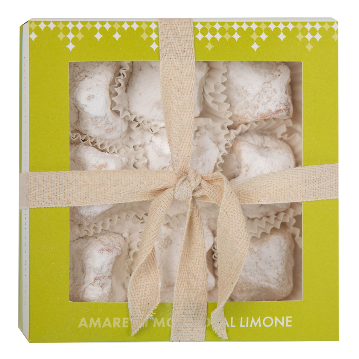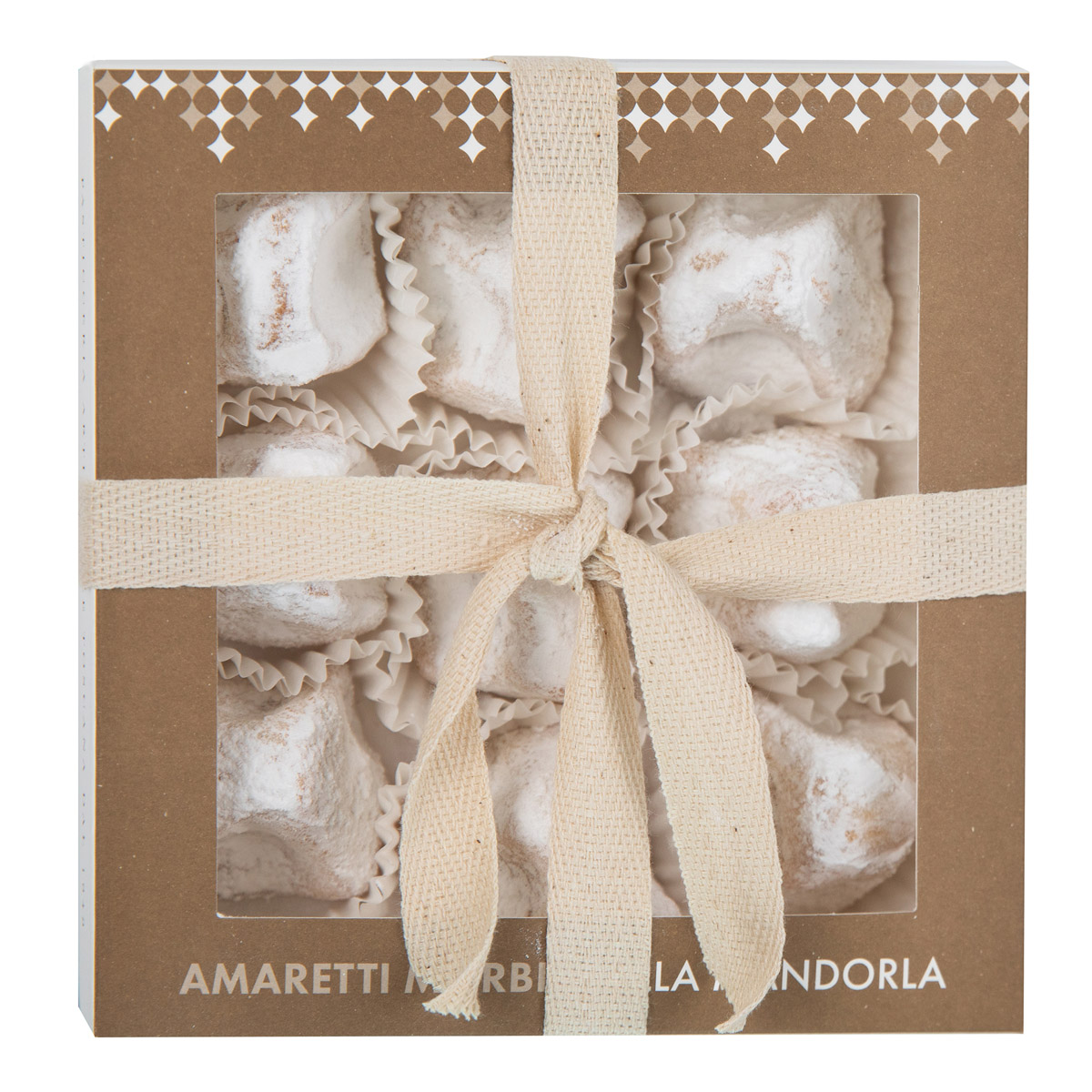 Il pacchetto degustazione contiene tre scatoline di amaretti freschi di nostra produzione: al cappuccino, al limone e alle mandorle.