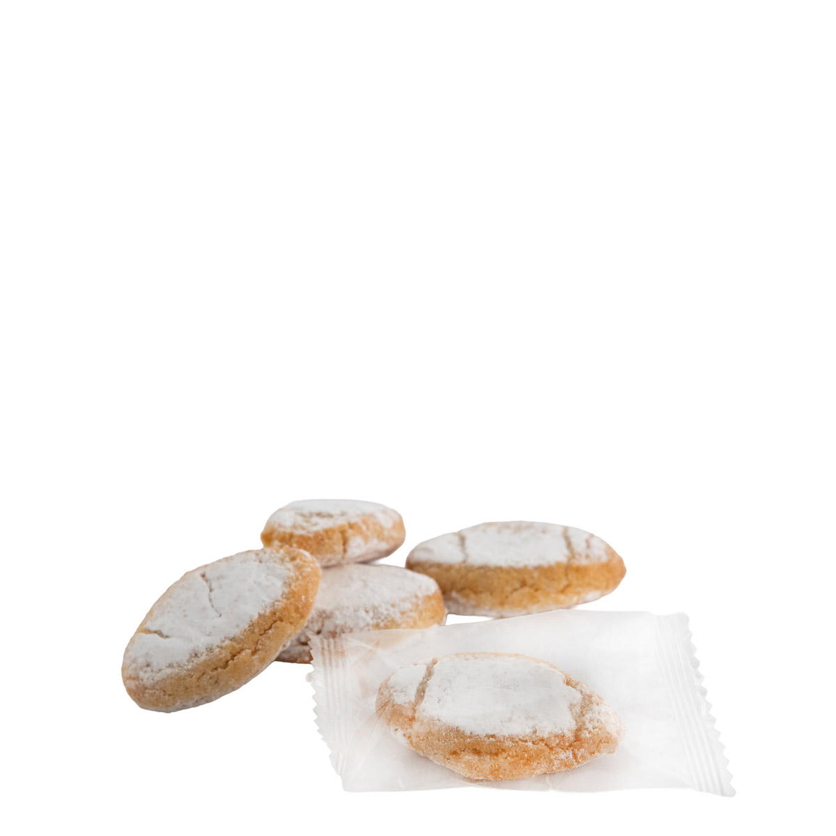 MANDORLE 41%, zucchero, albume d’UOVO (da allevamento a terra), zucchero a velo (zucchero, amido di mais), sciroppo di glucosio, sciroppo di zucchero invertito, conservante: acido sorbico, agente lievitante: bicarbonato d’ammonio.